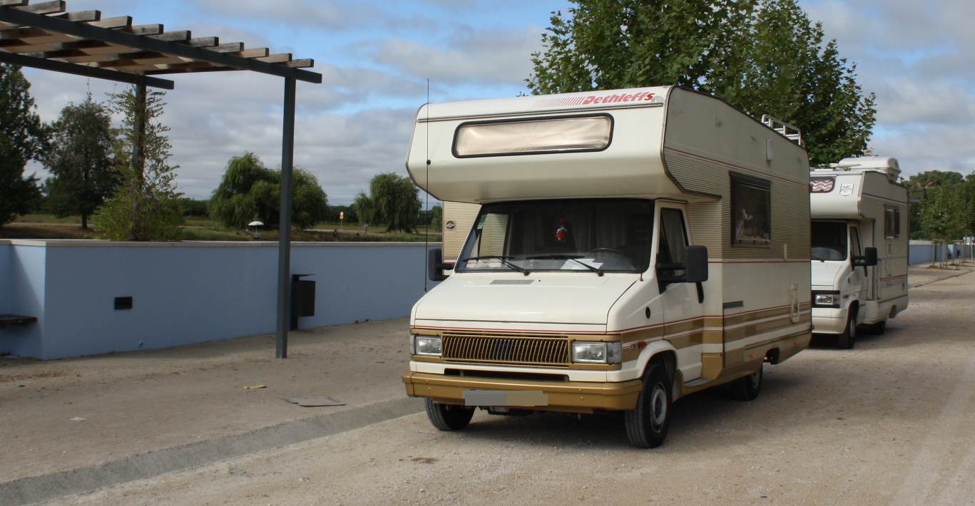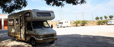 À entrada, um enorme cartaz anunciava uma promoção para autocaravanas: “Desconto de 20%” na pernoita”.